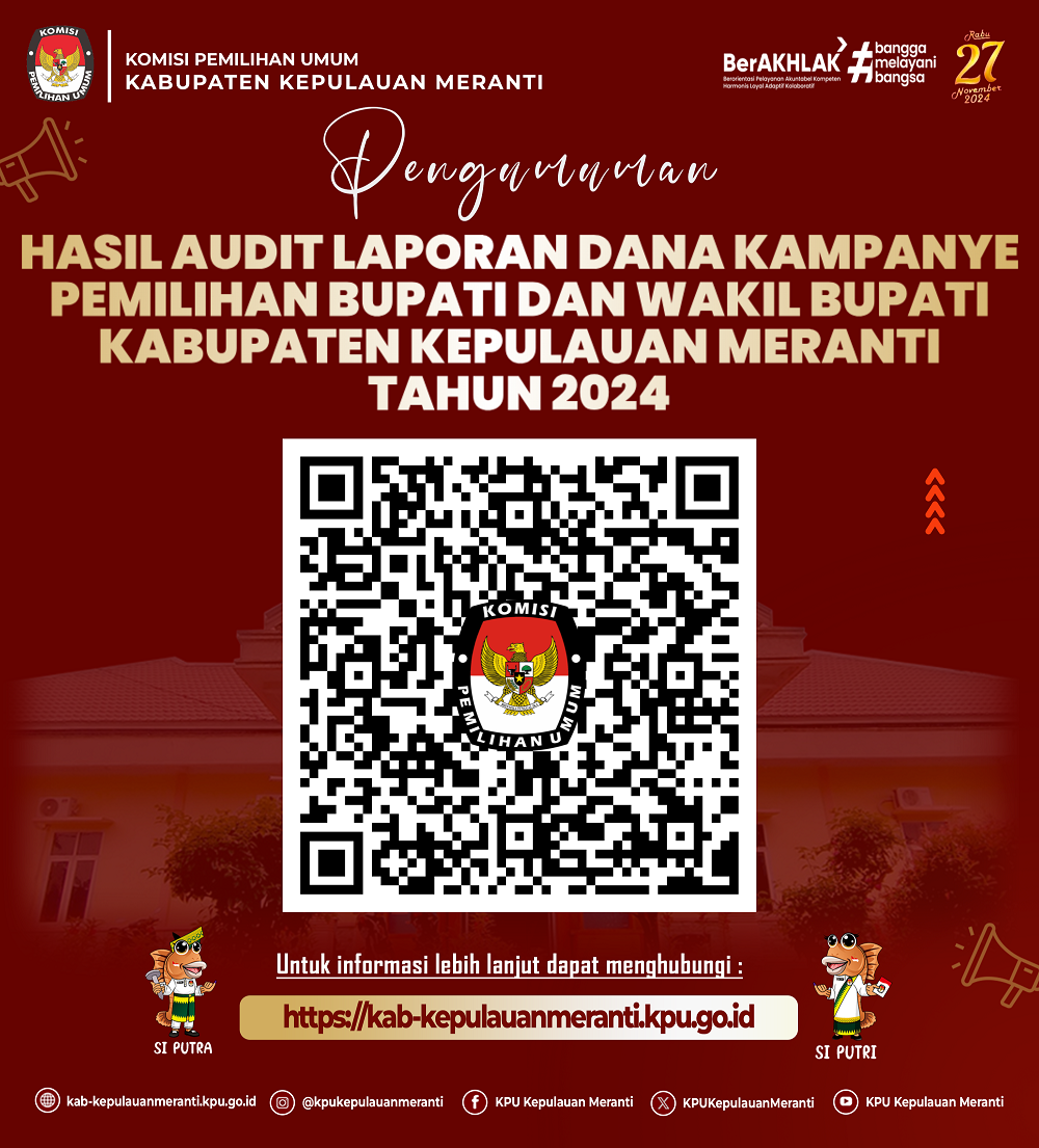 Pengumuman Hasil Audit Laporan Dana Kampanye Pemilihan Bupati dan Wakil Bupati Kabupaten Kepulauan Meranti Tahun 2024 Selengkapnya KLIK DISINI....