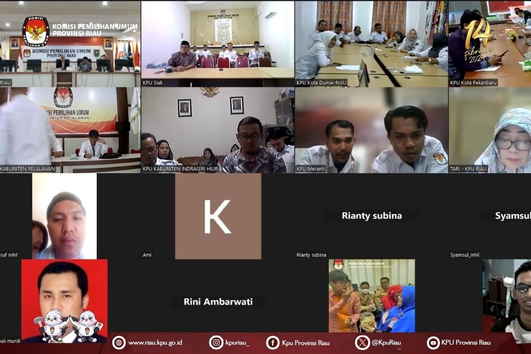 Kepulauan Meranti - Dalam rangka meningkatkan pemahaman serta kapasitas jajaran penyelenggara KPU se-Provinsi Riau, pada hari Senin, 29 April 2024 KPU Provinsi Riau menggagas pelaksanaan kegiatan bertema penguatan kelembagaan melalui zoom meeting yang diikuti oleh segenap Komisioner KPU Provinsi Riau seperti Ketua (Rusidi Rusdan), Anggota Nugroho Noto Susanto, Abdul Rahman, Sekretaris Ibu Sri Lestariningsih beserta segenap pimpinan dan jajaran sekretariat KPU di 12 KPU Kabupaten/ Kota se Provinsi Riau. Tidak terkecuali untuk KPU Kabupaten Kepulauan Meranti, kegiatan tersebut juga dihadiri oleh Komisioner (Katmuji, Hanafi, Romi Indra, Husni Setiawan dan Juwanda), Sekretaris (Afriadi Mahyu), Kasubbag (Loli Sastra dan Marisa Natalia Natra. K) dan Jajaran staf Sekretariat.