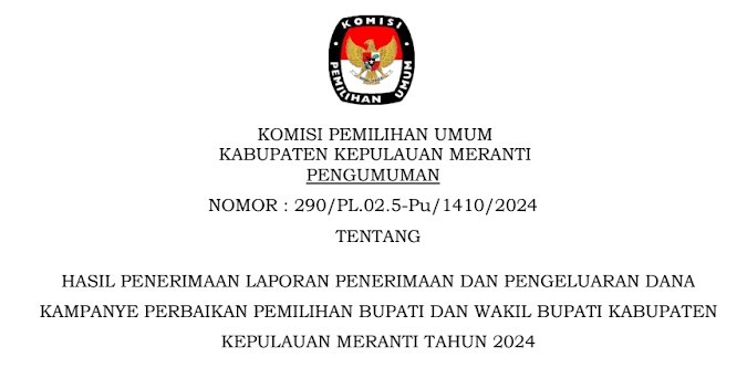 Pengumuman Hasil Penerimaan LPPDK Perbaikan Pemilihan Bupati dan Wakil Bupati Kabupaten Kepulauan Meranti Tahun 2024